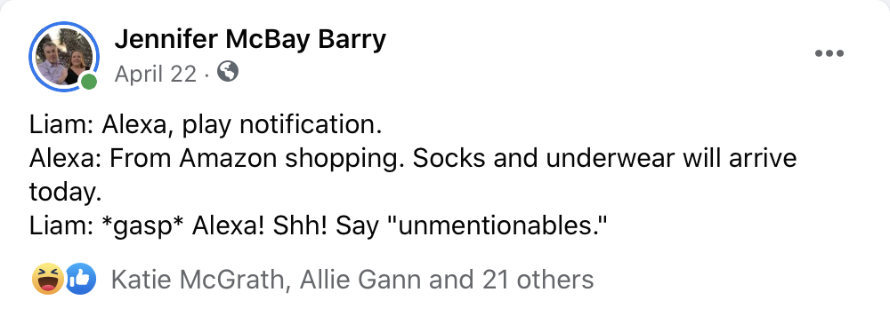 It’s been a few years since I posted these, so I went all the way back to 2019 and gathered them all—well, all that were benign enough to post on Facebook. Bonus: A few conversations with friends, so you know it’s not just me he gets sassy with.